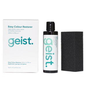 Please note; deep scratches on steering wheels and cracks on car seats or furniture may need to be repaired with Geist. Easy Filler before colouring. Like a liquid leather grain, this highly flexible filler can be wet-sanded with Geist. Dissolve to remove excess and achieve a smooth surface.