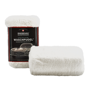 Swissvax Washpudel is our luxury wash pad with ultrafine microfiber on the outside for a perfect scratch free wash every time and a sponge on the inside to hold sufficient water/shampoo solution.
