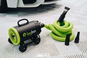 Simply attach your BlowR Mini to the wheelbase and the wheels allow you to pull the BlowR Mini along with you !